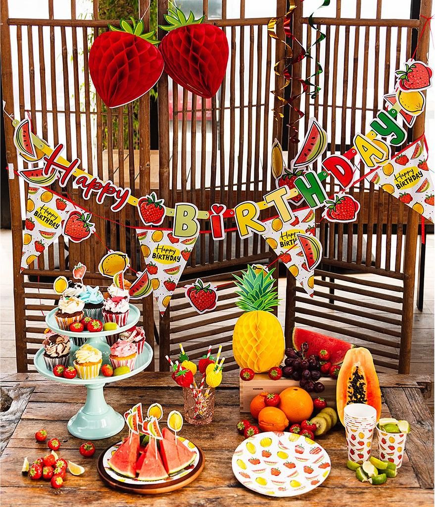 This set of 3 decorative swirl fruit decorations instantly creates a cheerful summer atmosphere – perfect for garden parties, barbecues, birthdays, or beach-themed celebrations.