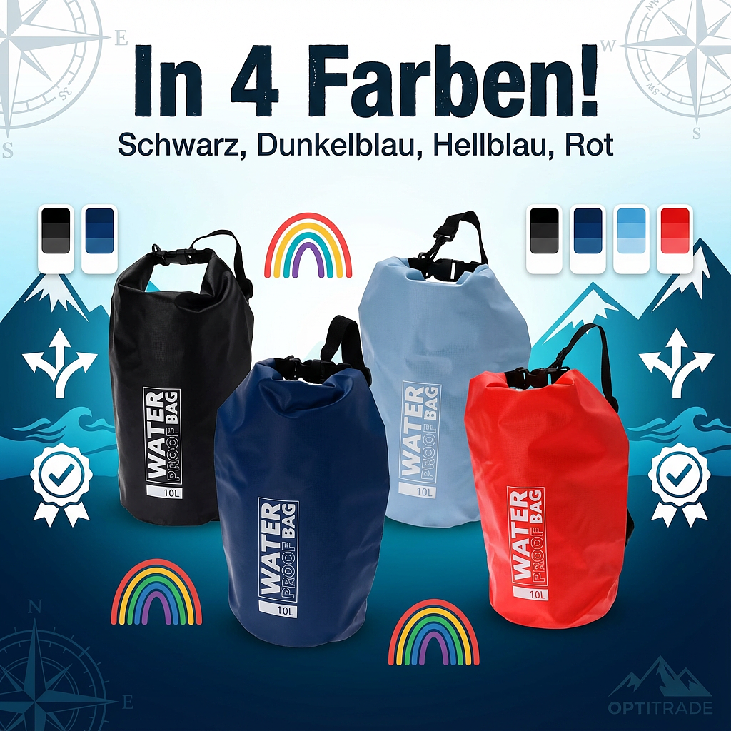 Reliably protect your valuables from moisture and dirt, whether you’re enjoying water sports, camping, or traveling. The CHAMP Drybag 10L is the ideal waterproof bag, perfectly combining functionality and robustness to keep your gear safe and dry.