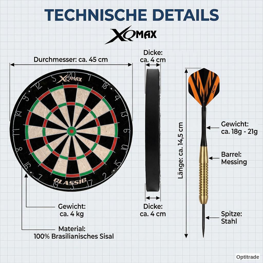 Cette cible professionnelle garantit des lancers précis. Fabriquée à 100 % en sisal brésilien, un matériau reconnu pour son exceptionnelle durabilité et ses propriétés auto-cicatrisantes, elle est dotée de poils en sisal alignés pour une pénétration optimale et une tenue parfaite des pointes de fléchettes en acier. Avec un diamètre idéal de 45 cm, cette cible de fléchettes répond aux normes des tournois officiels et garantit des heures de plaisir. Visibilité et protection optimales : pour protéger le mur et offrir une meilleure séparation visuelle, la cible est équipée d’un cadre noir élégant en 4 parties. Ce cadre rattrape les fléchettes perdues et assure un aspect impeccable. Le montage est incroyablement simple grâce aux fixations incluses ; le support se fixe sans effort à l’arrière de la cible. Jeu de fléchettes en acier de haute qualité pour des lancers précis : le jeu comprend six fléchettes en acier spécialement conçues pour les cibles en sisal. Les fléchettes sont dotées de pointes en acier trempé et d’un corps en laiton offrant une excellente prise en main et des performances exceptionnelles. Grâce à un équilibrage précis, ces fléchettes garantissent un vol contrôlé et stable. Les fléchettes sont fournies avec trois jeux différents de 6 ailettes aux designs variés, vous permettant d’exprimer votre style personnel.
