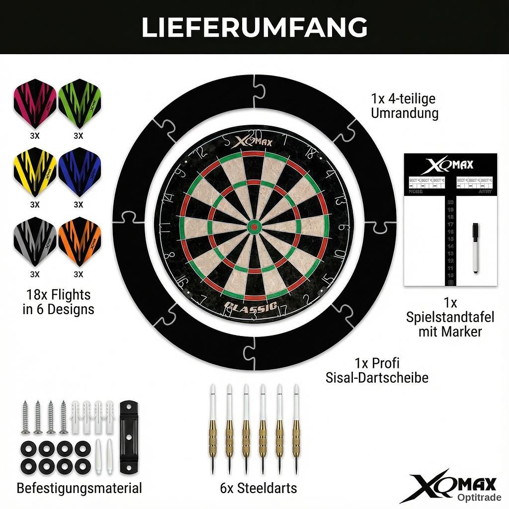 Plongez dans l’univers des fléchettes professionnelles. Cet ensemble complet vous offre tout le nécessaire pour des parties passionnantes : une cible en sisal de haute qualité, un jeu de fléchettes en acier précis et un tableau de score pratique. Idéal pour les joueurs ambitieux et les parties entre amis.