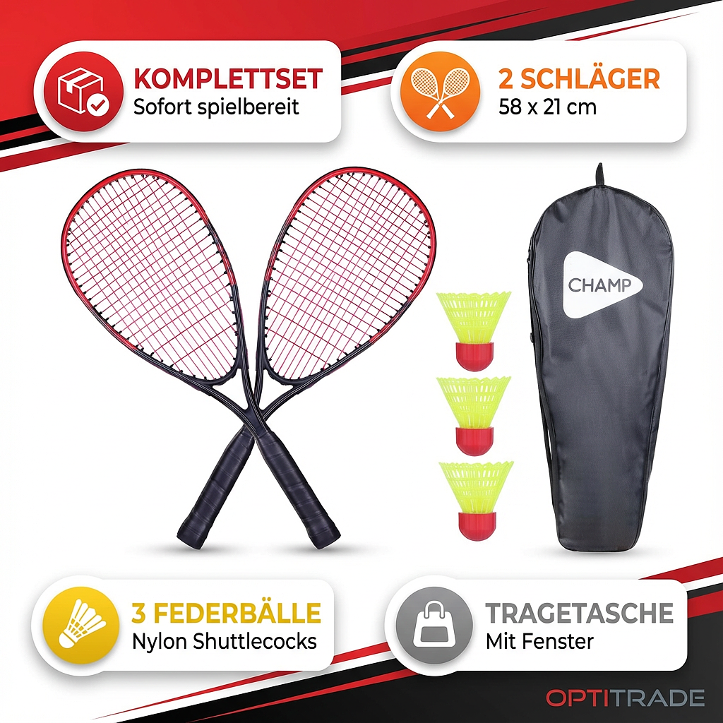 Ce set de badminton de haute qualité transforme les activités de plein air en un véritable plaisir ! Il se compose de deux raquettes robustes (63 cm chacune) en métal résistant, ainsi que d’un volant assorti en plastique durable – idéal pour des parties improvisées dans le jardin, au parc ou sur la plage. Ce set de trois pièces offre tout le nécessaire pour une partie rapide à deux. Parfait pour les enfants, les adolescents et les adultes qui aiment bouger en extérieur. Que ce soit pour une sortie en famille, un pique-nique ou des vacances, ce set de badminton garantit du plaisir, des jeux et de l’exercice où que vous soyez ! Achetez le set de badminton dès maintenant et profitez de moments sportifs en plein air ! – 2 raquettes en métal – Volant en plastique inclus – Idéal pour les activités de plein air – Compact, léger et prêt à l’emploi