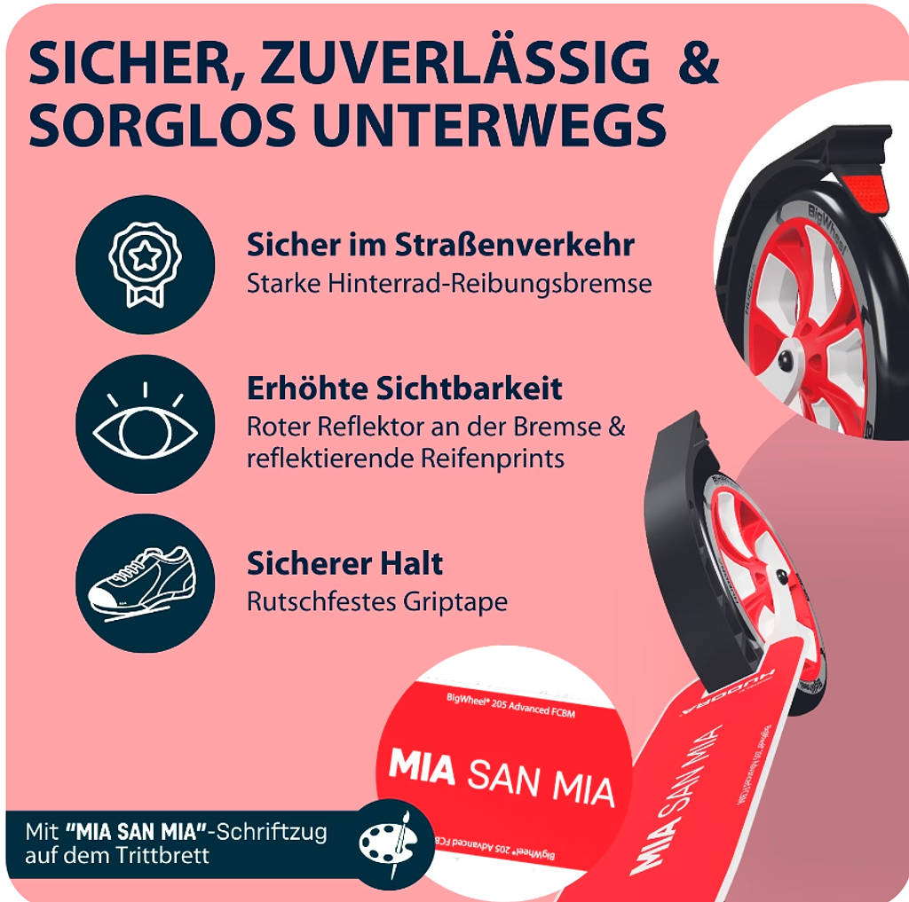 Procurez-vous dès maintenant cette trottinette exclusive, dans la limite des stocks disponibles, et vivez une expérience de conduite unique aux couleurs du FC Bayern Munich.