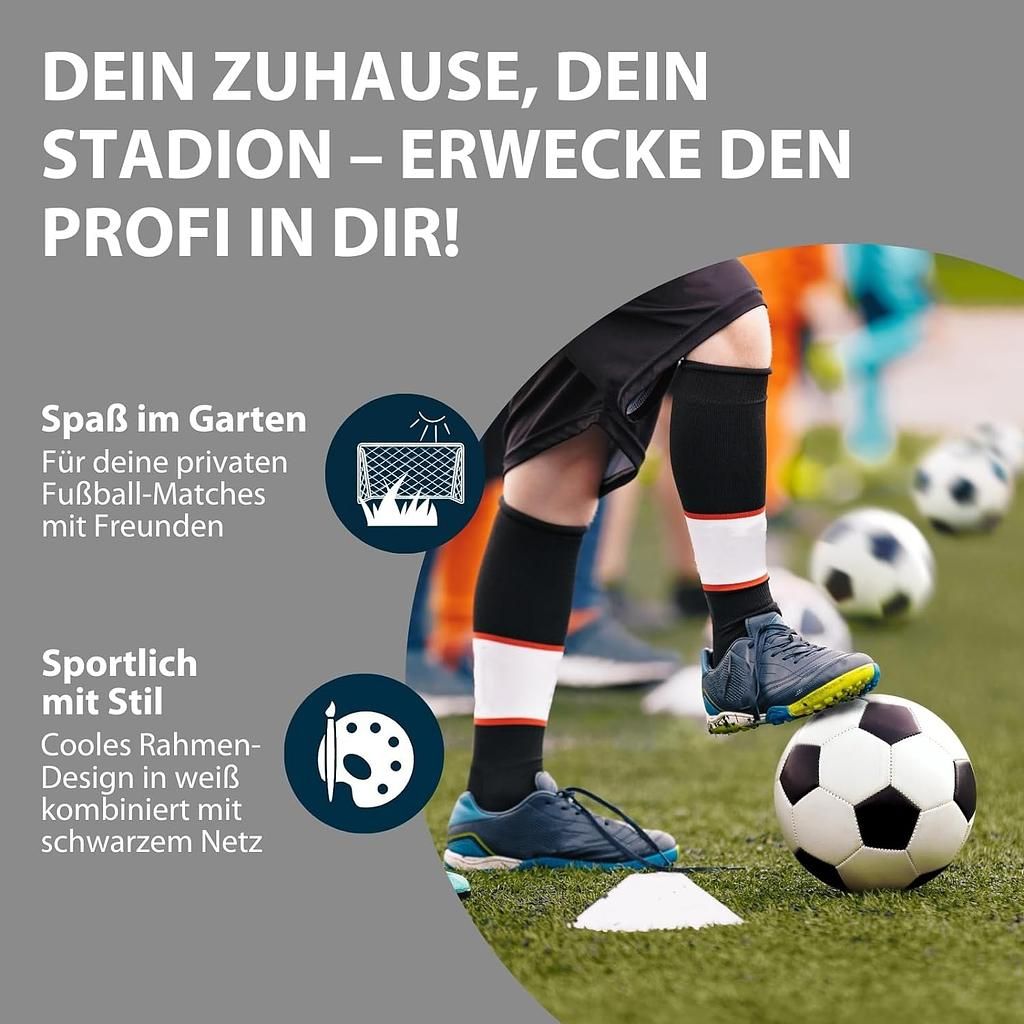 Le but de football Hudora Advanced offre des possibilités de jeu exceptionnelles, aussi bien pour les loisirs que pour l’entraînement. Son allure sportive lui confère un aspect professionnel. La fixation inférieure du filet et le système de crochets innovant et unique garantissent un montage rapide et facile, ainsi qu’une excellente tension et une grande durabilité du filet. Ce dernier de 5 mm d’épaisseur résiste même aux tirs les plus puissants. Grâce à sa structure robuste en tubes d’acier avec des poteaux de 75 mm de diamètre et son filet en polyester résistant aux intempéries, ce but est adapté à toutes les conditions climatiques. Le montage est incroyablement simple grâce aux fixations à vis robustes des poteaux. Les piquets de sol inclus assurent une stabilité optimale, et la structure en tubes d’acier thermolaqué confère au but une grande robustesse. Ce but convient ainsi à tous les groupes d’âge, dès les tout-petits, et également à divers autres sports de balle.