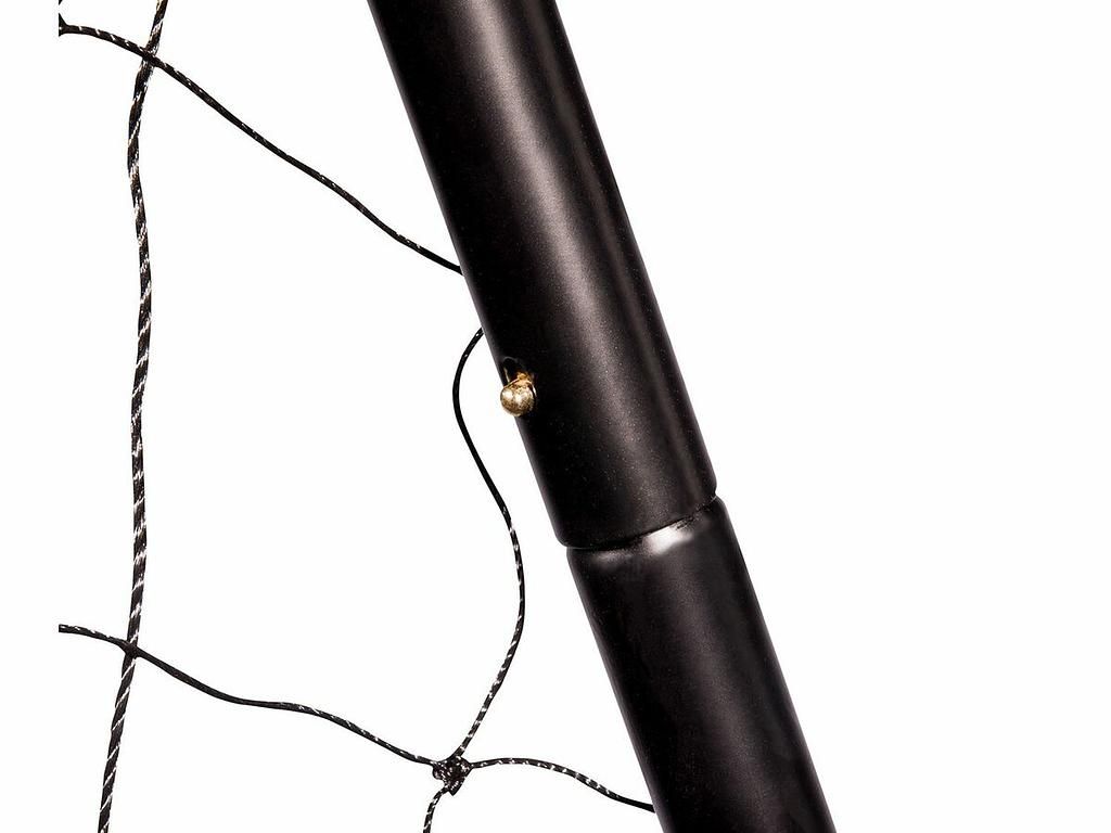 Les poteaux avec leurs clips pratiques facilitent grandement le montage du but. Sept piquets assurent une base stable, et des cordons de serrage maintiennent le filet en polyester résistant aux intempéries. La structure tubulaire thermolaquée est elle aussi résistante aux intempéries.
