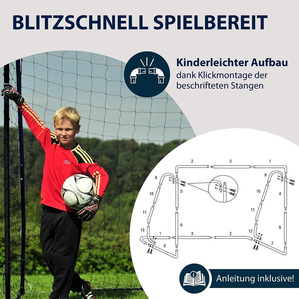 Le but de football Hudora XXL impressionne par son cadre résistant aux intempéries et recouvert de peinture en poudre, son montage rapide par simple clic et son support stable – idéal pour les matchs improvisés et les grands buts !