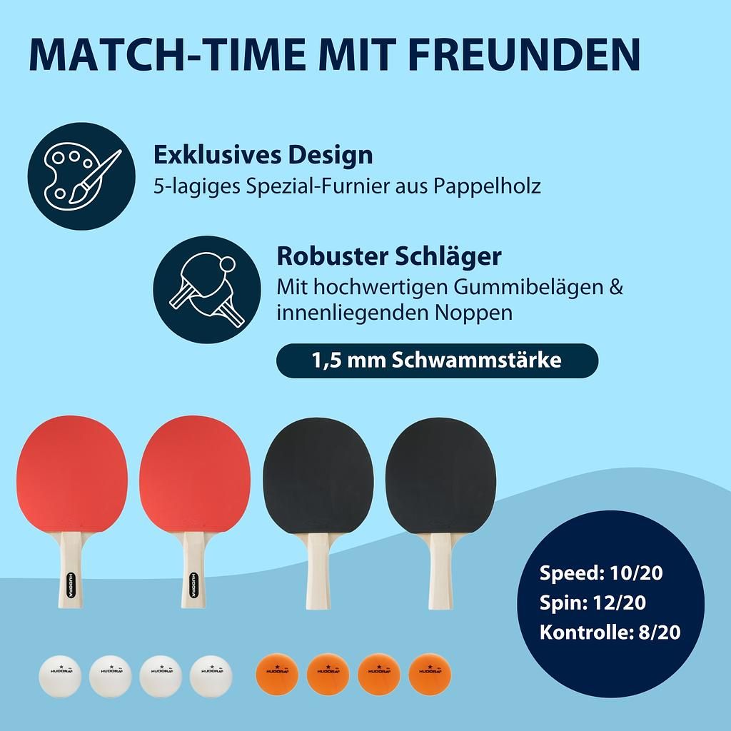 Ensemble de tennis de table Hudora Friends – 4 raquettes et 8 balles