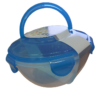 Les deux parties sont en plastique facile d’entretien ; le saladier transparent avec son couvercle bleu s’intègre parfaitement dans toutes les cuisines.