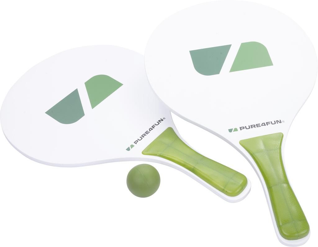 Le kit de beach tennis Pure4Fun comprend des raquettes en bois robustes, une balle adaptée à la plage et un sac pratique – pour des parties sportives et conviviales sur le sable.
