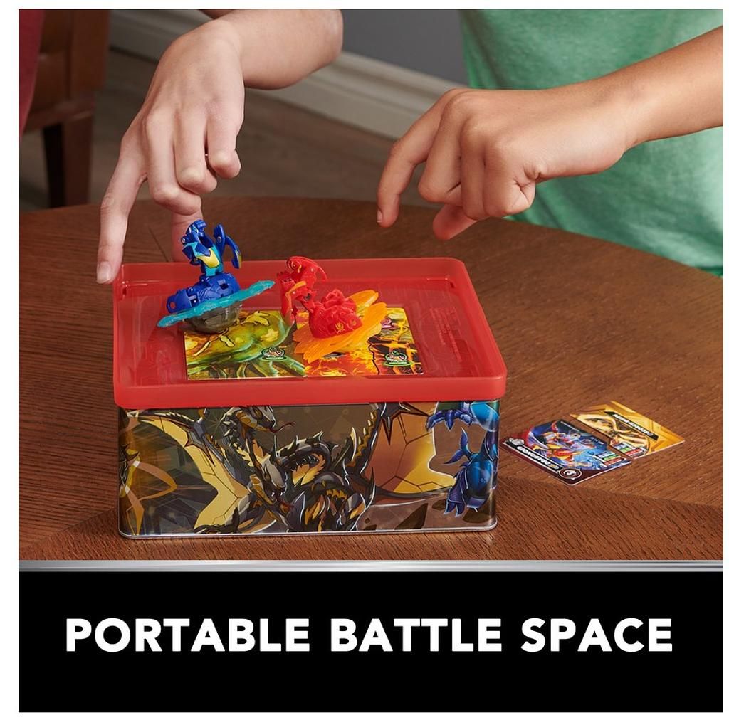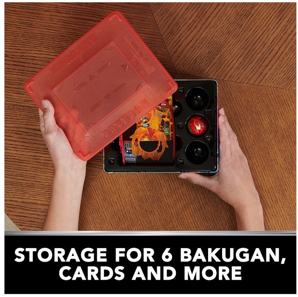 Die Bakugan Baku-tin bietet mit ihren zwei Ebenen ausreichend Platz für Ihre Bakugan Sammelkarten, Special Attack-Ringe und natürlich Ihre Bakugan-Figuren. So haben Sie Ihr gesamtes Equipment stets griffbereit und sicher verstaut, ideal für unterwegs.