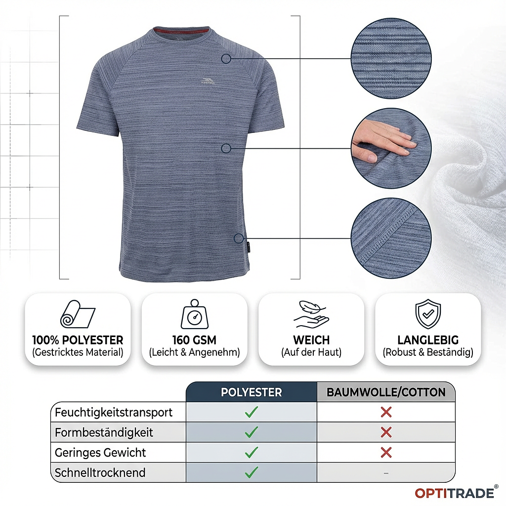 Ce t-shirt de performance pour homme est conçu pour vous garder au frais et au sec, même lors des entraînements les plus exigeants. La technologie exclusive Duoskin, reconnaissable à l’impression au dos, assure une excellente gestion de l’humidité. Ce t-shirt d’entraînement à manches courtes est votre partenaire idéal pour la salle de sport, la randonnée ou la course à pied. Propriétés fonctionnelles : Grâce à sa technologie de tissu spéciale, le t-shirt évacue efficacement la transpiration. De plus, le tissu sèche rapidement, pour une sensation de confort et de fraîcheur même après l’effort le plus intense. Son design intemporel, avec son col rond et son logo Trespass discret, rend ce t-shirt polyvalent.