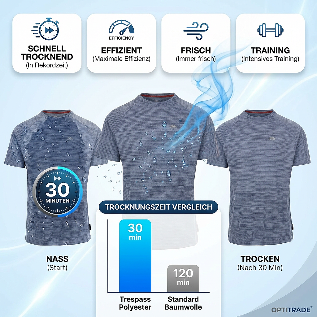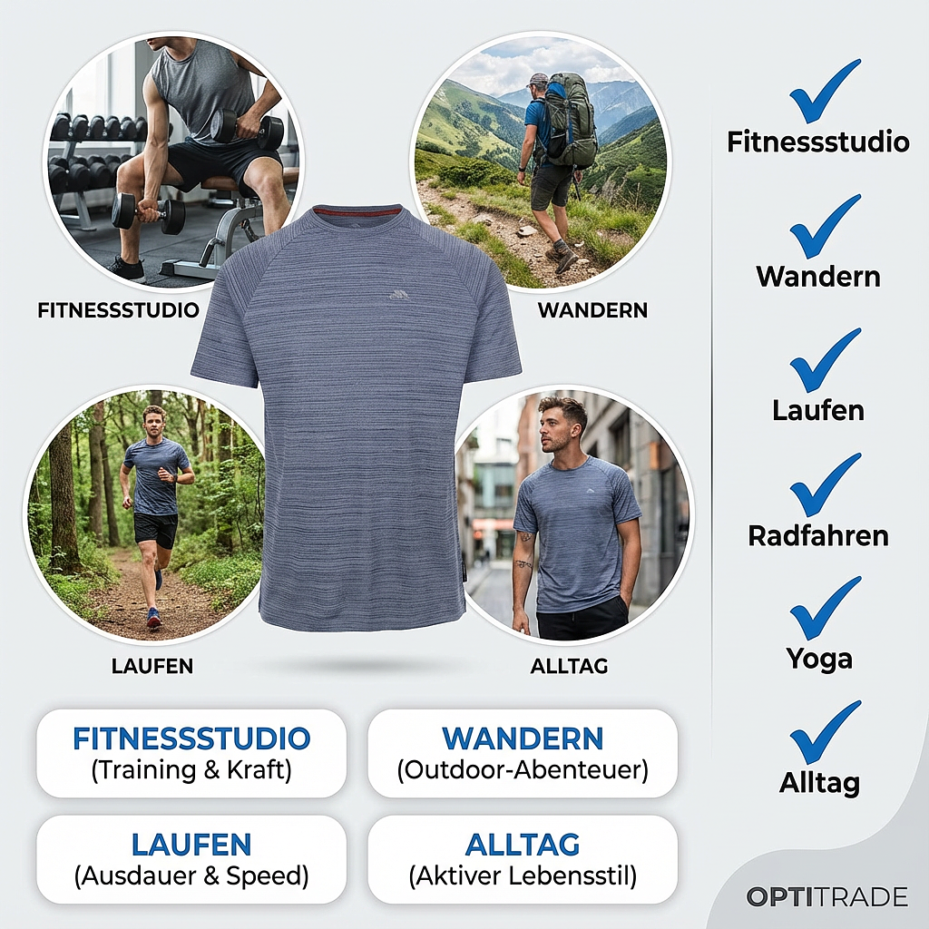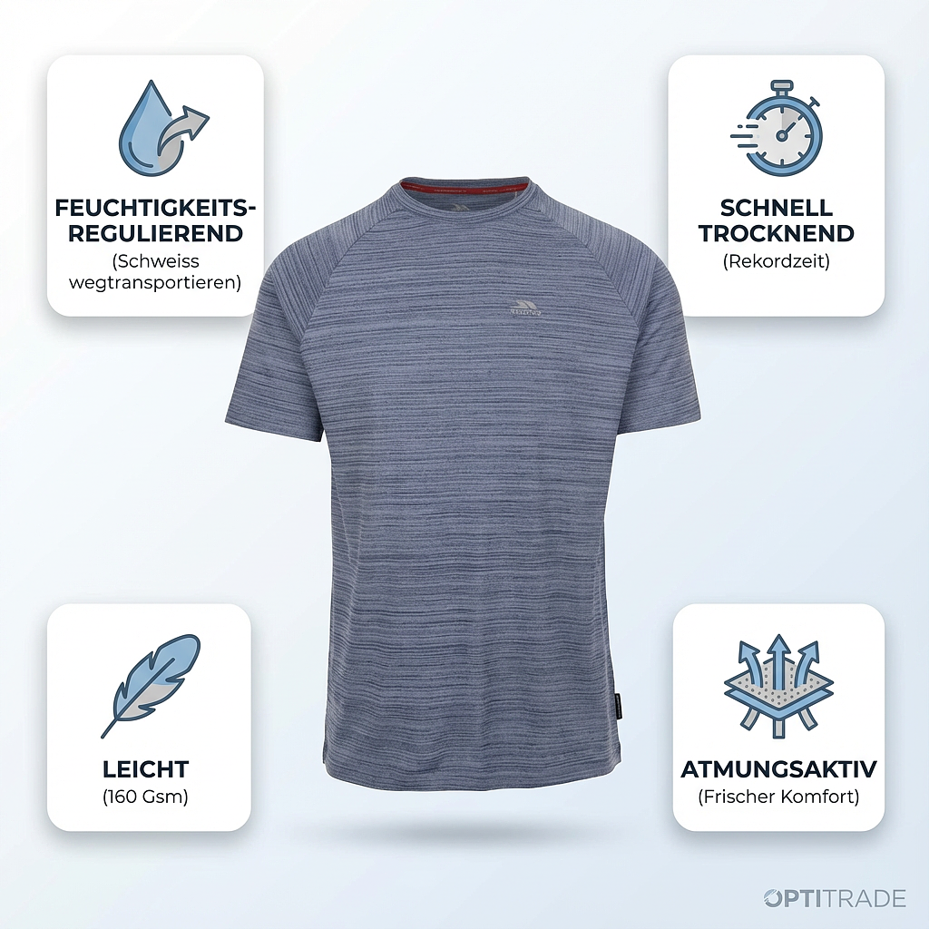 Le t-shirt pour homme Trespass LEECANA offre un confort de première classe et la technologie Duoskin pour une gestion optimale de l’humidité – parfait pour les entraînements intensifs et les activités de plein air.