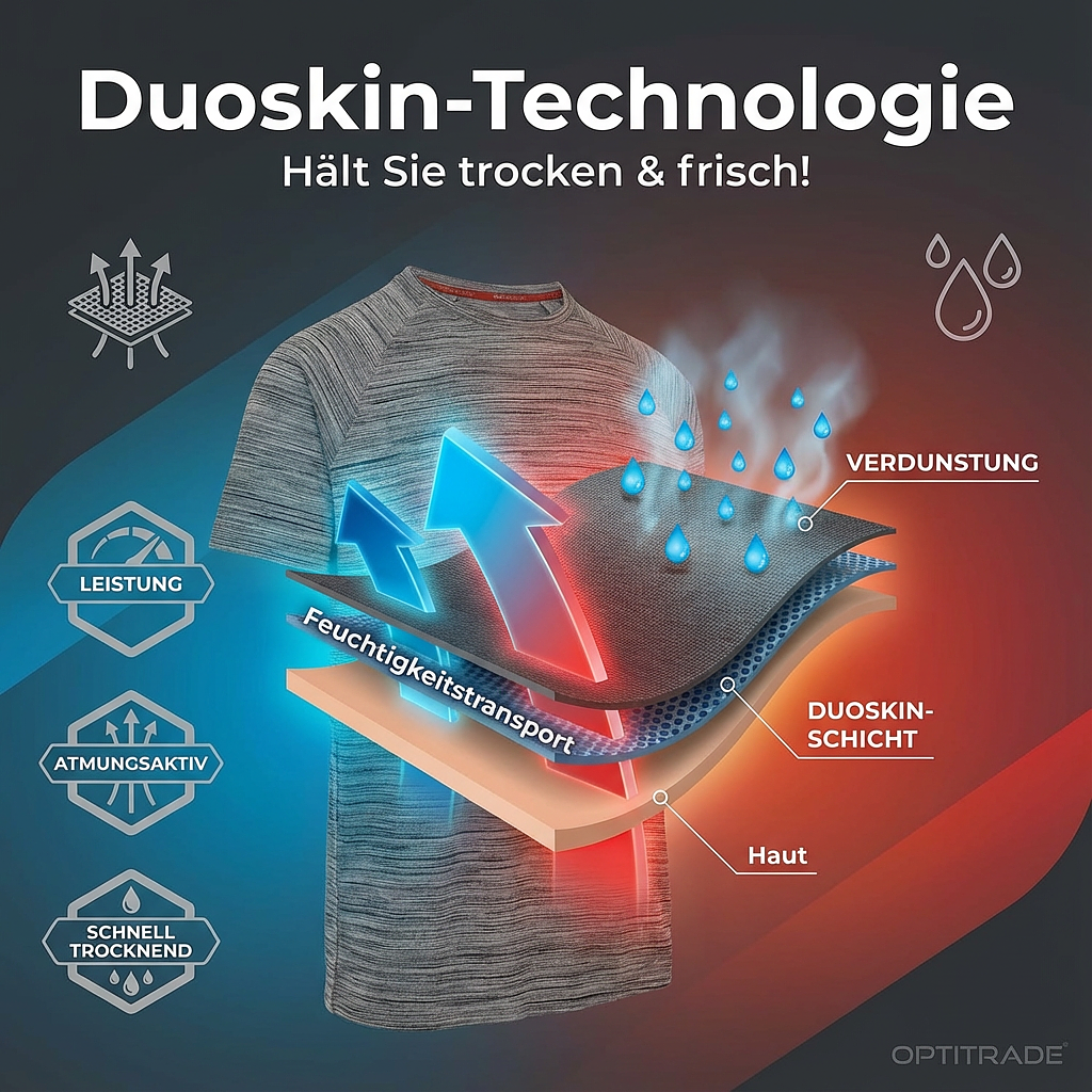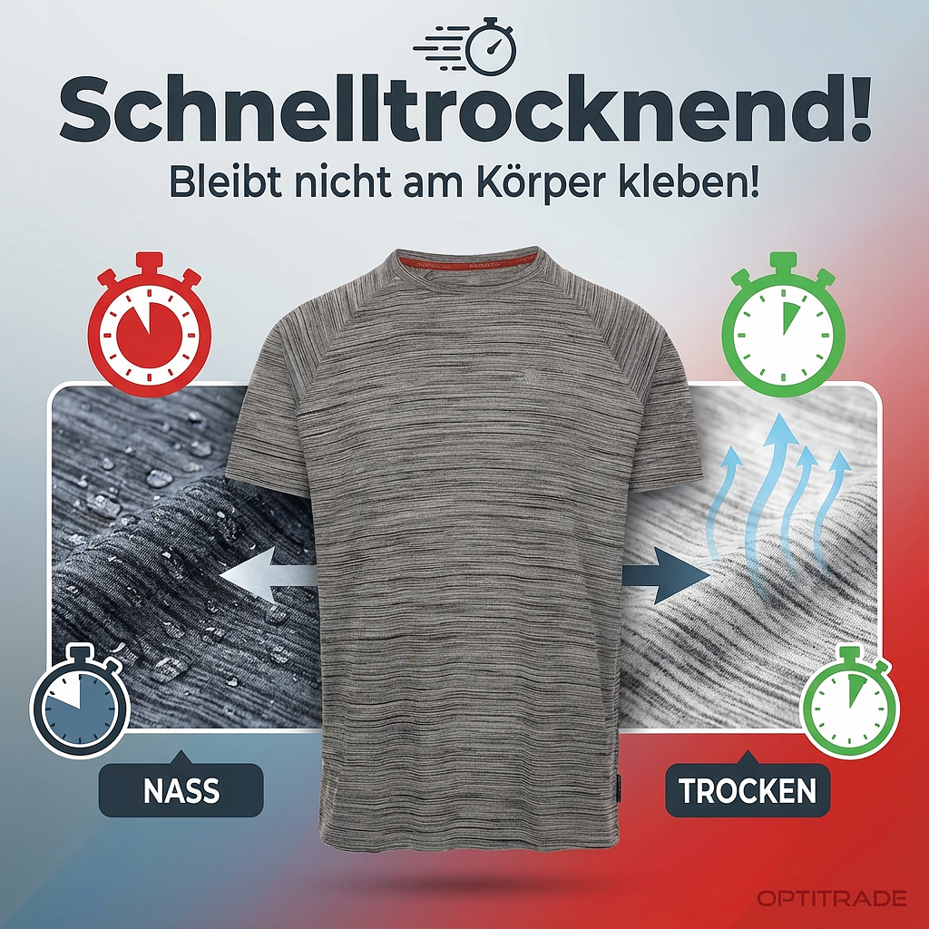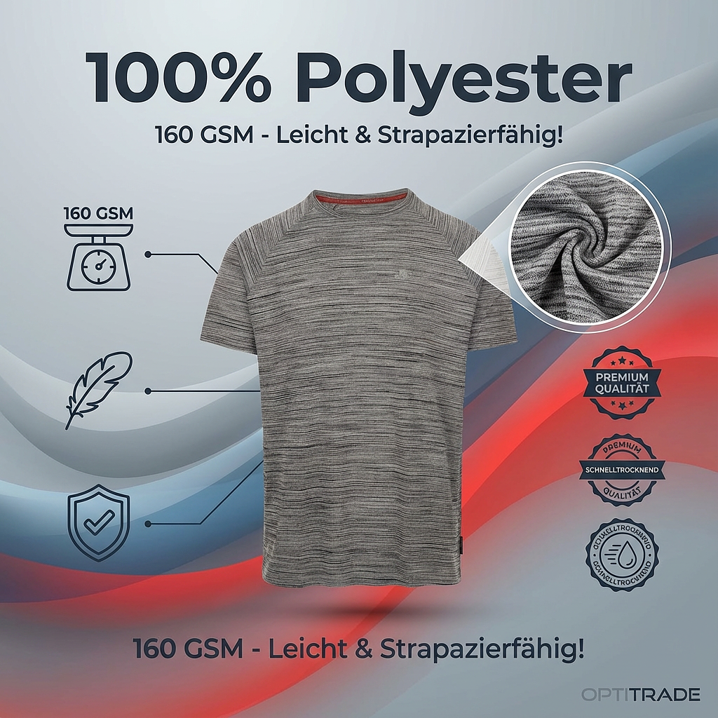 Ce t-shirt de sport à manches courtes offre une liberté de mouvement maximale et convient à toutes les situations, que ce soit pour un entraînement intensif ou au quotidien. Son col rond classique lui confère un style intemporel, tandis que le logo Trespass discret souligne la qualité de la marque. Technologie innovante : la technologie exclusive Duoskin, imprimée au dos, vous garantit de rester au sec et au frais en permanence. Ce t-shirt respirant exploite les propriétés avancées de ses matériaux pour vous permettre d’atteindre des performances optimales. Détails et caractéristiques du produit : – Matière : 100 % polyester (tricot) – Grammage : 160 g/m² (équilibre parfait entre légèreté et résistance) – Manches : Manches courtes pour une liberté de mouvement optimale – Encolure : Col rond – Technologie : Impression Duoskin au dos. Votre avantage : Gestion de l’humidité. La technologie textile unique régule l’humidité et évacue efficacement la transpiration. Le t-shirt sèche rapidement, pour une sensation de fraîcheur et de confort immédiate, même après l’entraînement le plus intense. Découvrez la différence en termes de qualité et de performance. Commandez votre Trespass Performance Shirt dès aujourd’hui et profitez d’un confort et de performances inégalés.