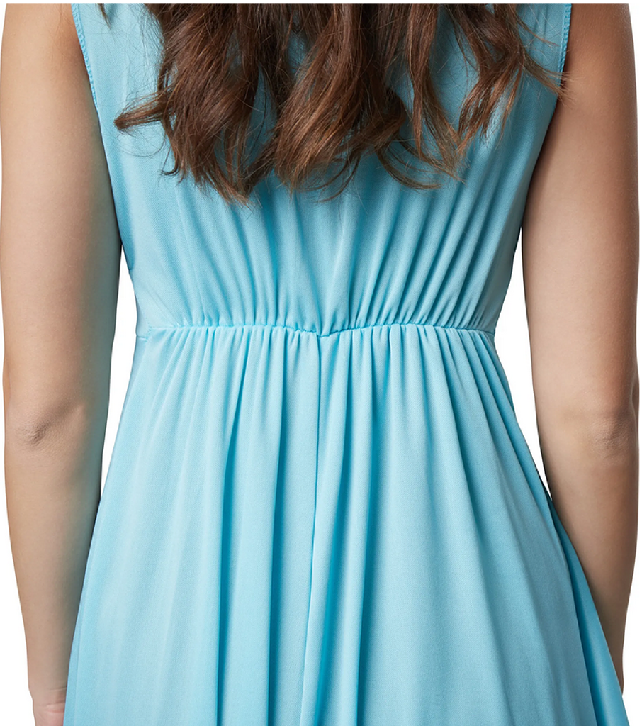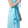 L’abito senza maniche è realizzato in un tessuto azzurro delicatamente scintillante che si adatta splendidamente a ogni movimento, creando una silhouette aggraziata. La profonda scollatura a V accentua delicatamente il décolleté e conferisce all’abito un tocco femminile ed elegante. Grazie al materiale leggero e arioso, il costume è eccezionalmente comodo da indossare, perfetto per lunghe serate all’insegna del ballo, dei festeggiamenti e del glamour.