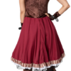 L’abito in raso a maniche corte colpisce per i materiali di alta qualità e i dettagli raffinati. Il corpetto in pelle a gilet con allacciatura discreta crea una silhouette femminile, mentre la gonna multistrato con cinture verticali e fibbie accentua perfettamente il tipico stile Steampunk.