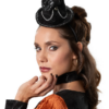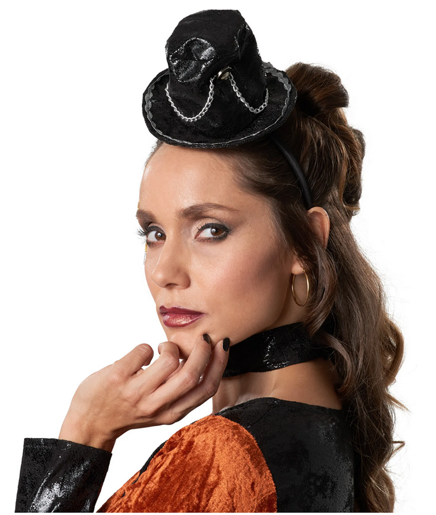 Una caratteristica speciale è il colletto staccabile, che aggiunge versatilità all’outfit: formale o giocoso, a te la scelta! Il piccolo cappello con delicate catene e ornamenti aggiunge il tocco finale e ti trasforma in una vera principessa Steampunk.