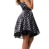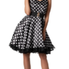 Abbina l’outfit a occhiali da sole cat-eye, una fascia per capelli, rossetto rosso e tacchi alti per completare il tuo look elegante. Che si tratti di una festa a tema anni ’50, di un evento rock ‘n’ roll o di un outfit di coppia, con questo abito rockabilly da donna sarai sicuramente al centro dell’attenzione in pista!