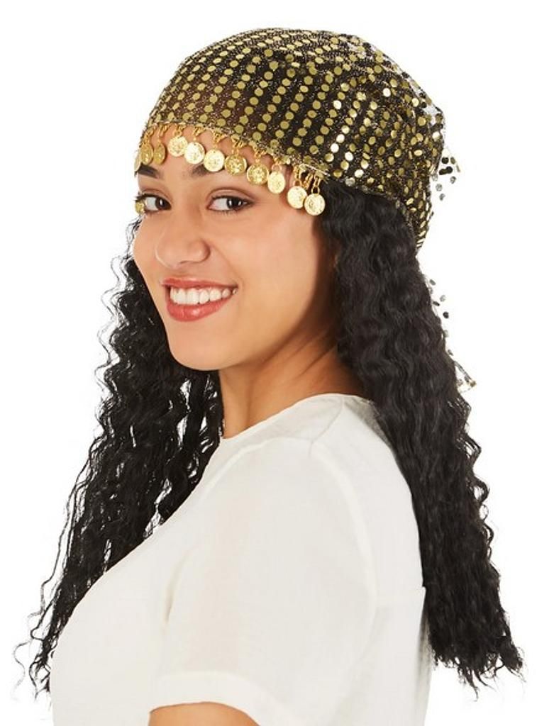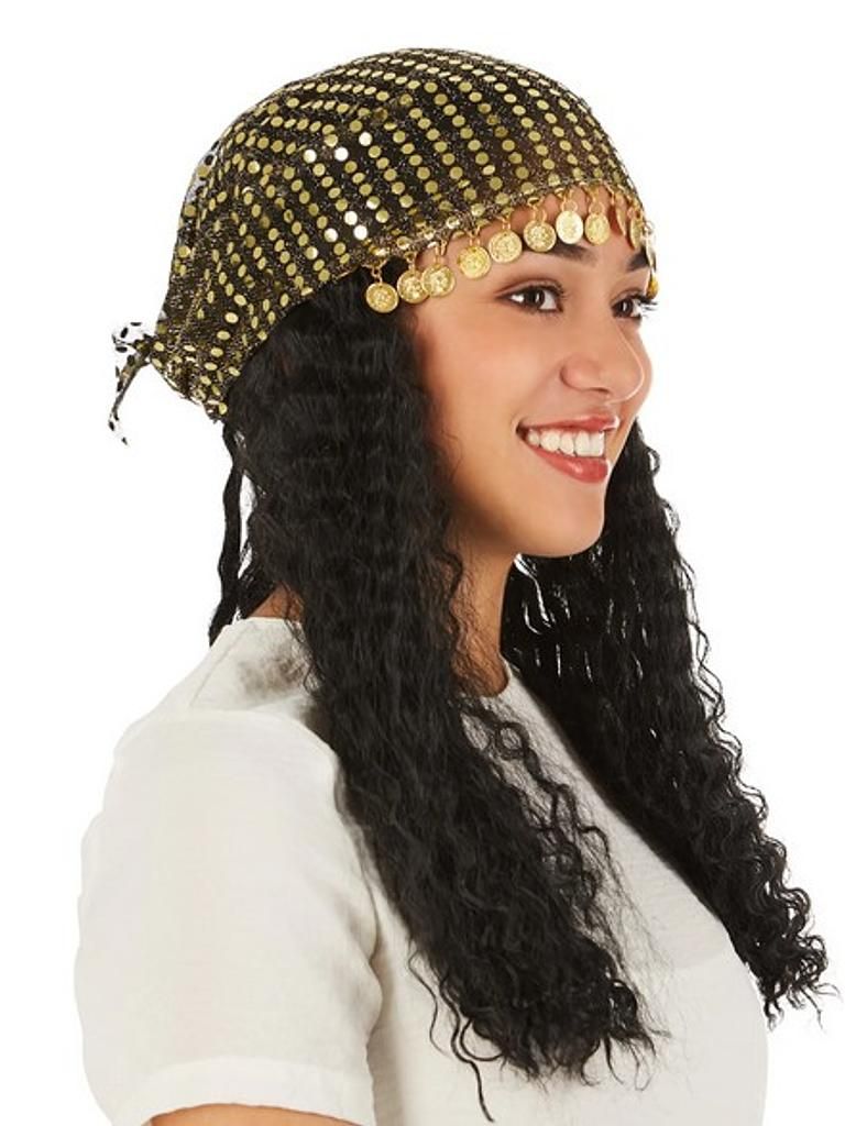 – Inklusive Kopftuch aus glitzerndem Paillettenstoff mit Metallmünzendekoration