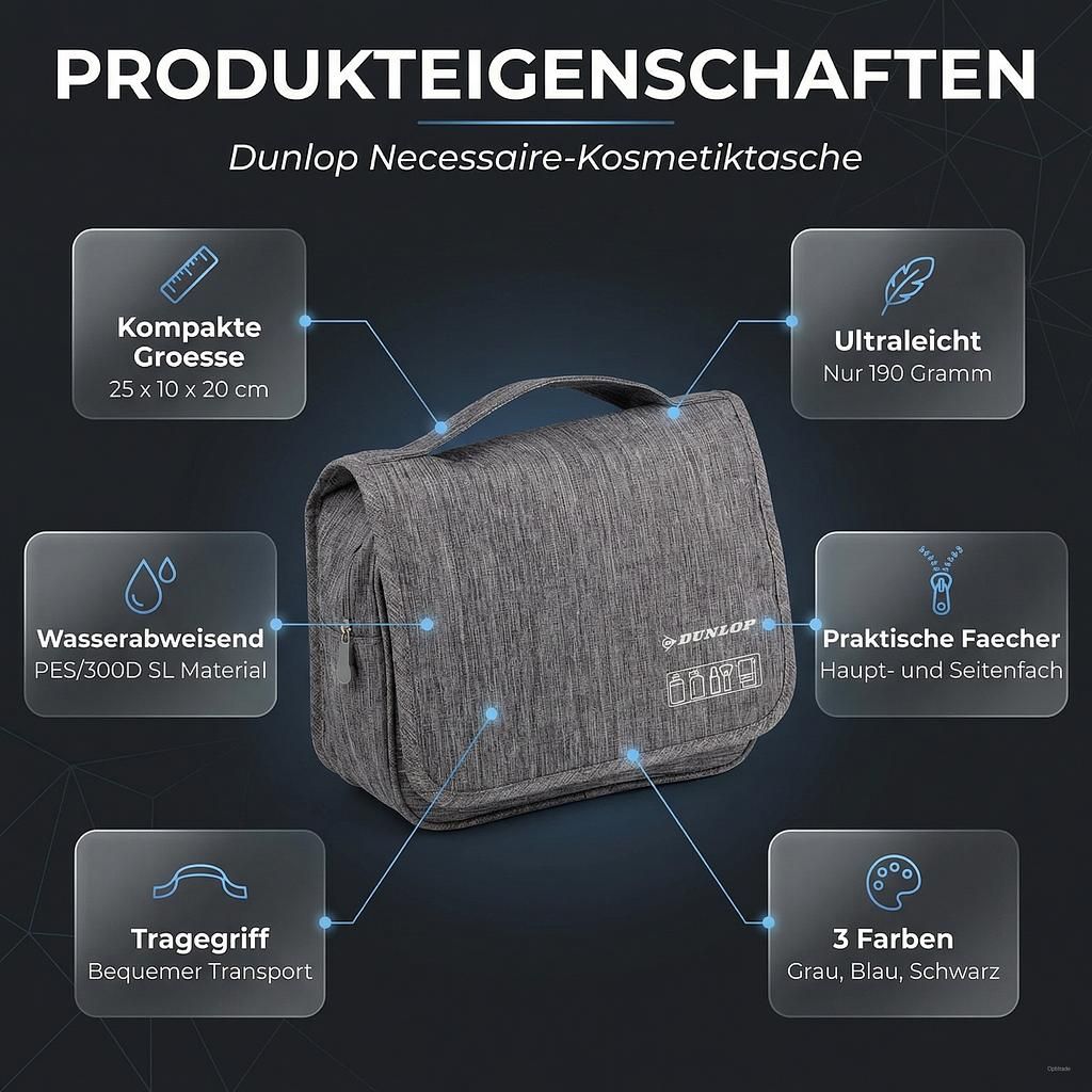 Il beauty case Dunlop Travel è la scelta perfetta per chi desidera tenere i propri articoli da toeletta organizzati e a portata di mano, sia a casa che in viaggio.