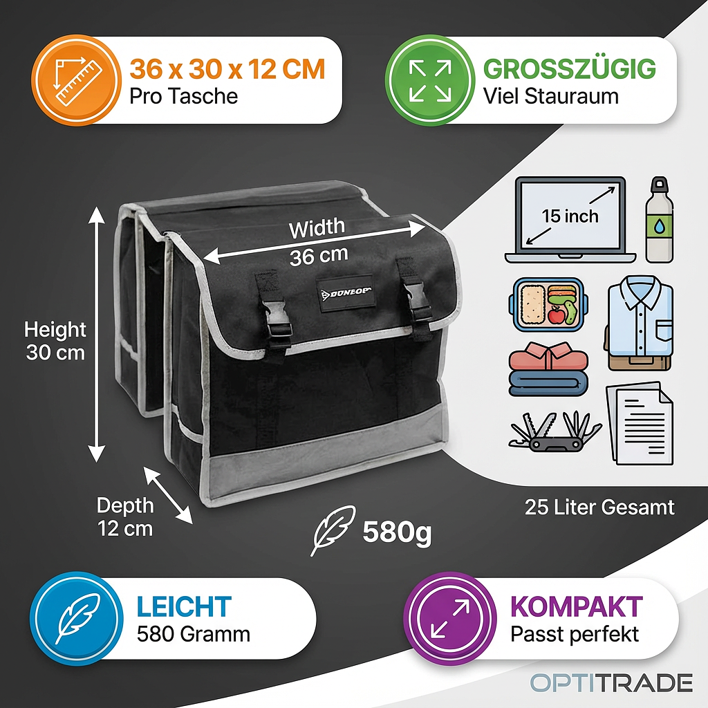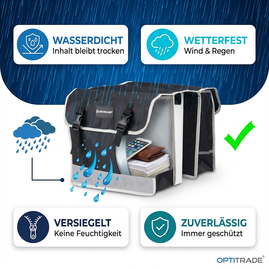Investi in questa soluzione pratica e sicura per la tua bici. Ordina oggi stesso la tua nuova Borsa laterale Dunlop e vivi viaggi spensierati con qualsiasi condizione atmosferica.