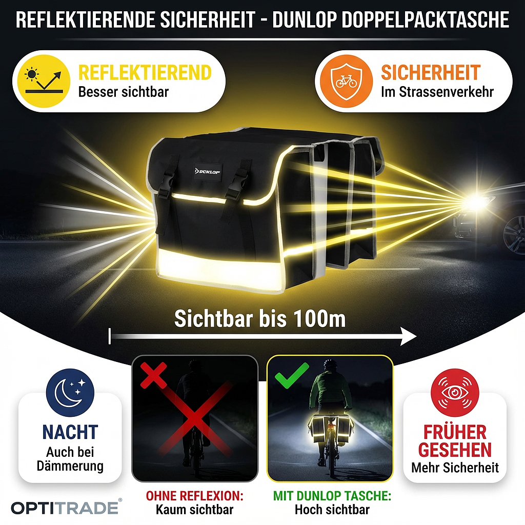 Una buona visibilità è essenziale, soprattutto in condizioni di scarsa illuminazione o al crepuscolo. Questa borsa a tracolla è dotata di strisce riflettenti che migliorano significativamente la tua sicurezza sulla strada. Sarai visto prima e potrai guidare più rilassato, indipendentemente dall’ora del giorno.