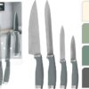 Set di coltelli Excellent Houseware da 4 pezzi: lame in acciaio inossidabile di alta qualità e manici ergonomici e antiscivolo in quattro colori per un taglio preciso e una cucina elegante.