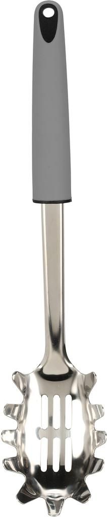 Questo cucchiaio per spaghetti in acciaio inox 430 di alta qualità semplifica la porzionatura della pasta. Il suo design curato garantisce una presa ottimale sui noodles, mentre il manico soft-touch con anima in PP offre una presa comoda e sicura, anche ad alte temperature.