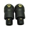 Due tappi terminali neri, diametro 25 mm, con pulsante di bloccaggio e vite per trampolini HUDORA Fantastic.
