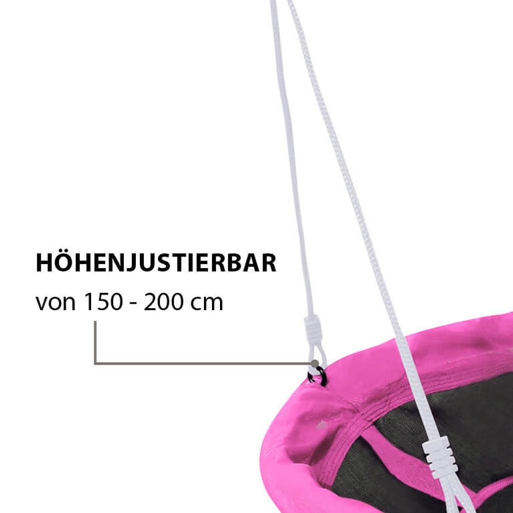 Questa altalena a nido rosa si distingue per la sua seduta chiusa. A differenza dei modelli con seduta in rete, la superficie è particolarmente morbida e invita a sedersi comodamente, leggere o sognare ad occhi aperti. Con un generoso diametro di circa 90 cm, l’altalena a nido da 90 cm offre ampio spazio per ore piacevoli. Durata e flessibilità: grazie all’utilizzo di materiali resistenti alle intemperie (plastica), questa altalena per bambini è resistente alle intemperie e particolarmente robusta. È ideale per l’uso in giardino o in terrazza (all’aperto). Se c’è abbastanza spazio, l’altalena può essere montata anche come nido accogliente nella cameretta dei bambini (all’interno). Il montaggio è semplice e l’altezza è facilmente regolabile.