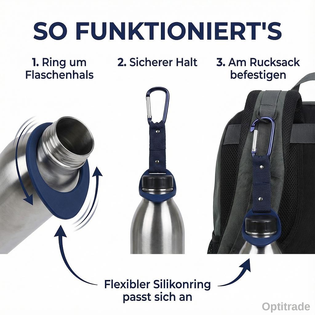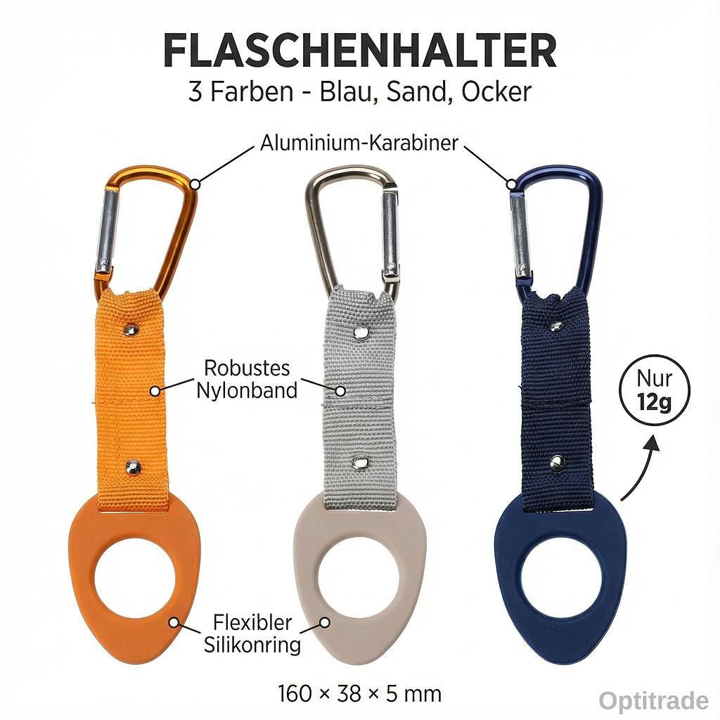 Che tu sia in viaggio, in escursione o semplicemente nella tua routine quotidiana, il nostro pratico portaborraccia ti consente di avere la tua bevanda a portata di mano. L’anello flessibile in silicone offre una presa sicura, mentre il resistente cinturino in nylon e i moschettoni in alluminio assicurano una presa salda.