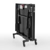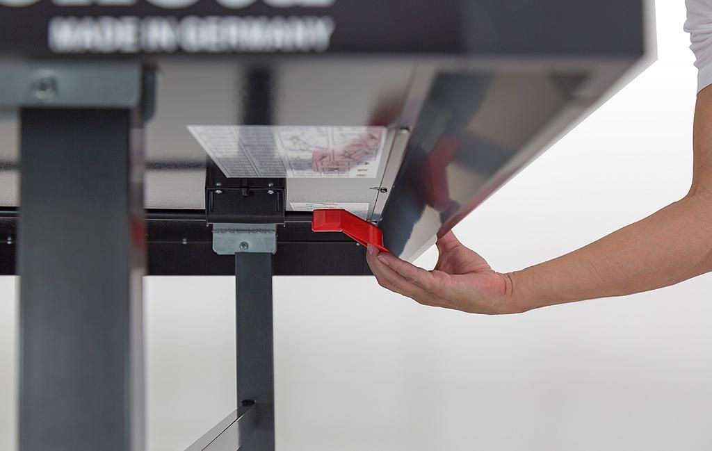 Norma europea: EN 14468-1 Per una qualità di livello mondiale. Superficie di gioco/profilo del telaio: truciolato fine da 25 mm; Colore: blu; Multistrato; Profilo del telaio A-60 mm, verniciato a polvere; Telaio di base: Super-Compact (Tipo 5); Tubo profilato rettangolare 60 x 40 mm, verniciato a polvere 4 ruote (diametro 125 mm) con battistrada in gomma, tutte girevoli; Piedini di livellamento sulle gambe posteriori compensano le superfici irregolari e le diverse altezze del pavimento fino a 30 mm; due molle a gas neutralizzano il peso delle superfici di gioco quando si piega o si apre il tavolo; in posizione di stoccaggio, è possibile inserire facilmente più tavoli da ping pong; il tavolo da ping pong è completamente preassemblato e pronto per giocare; Meccanismo di bloccaggio; sistema di serraggio con morsetto sotto il profilo del telaio
