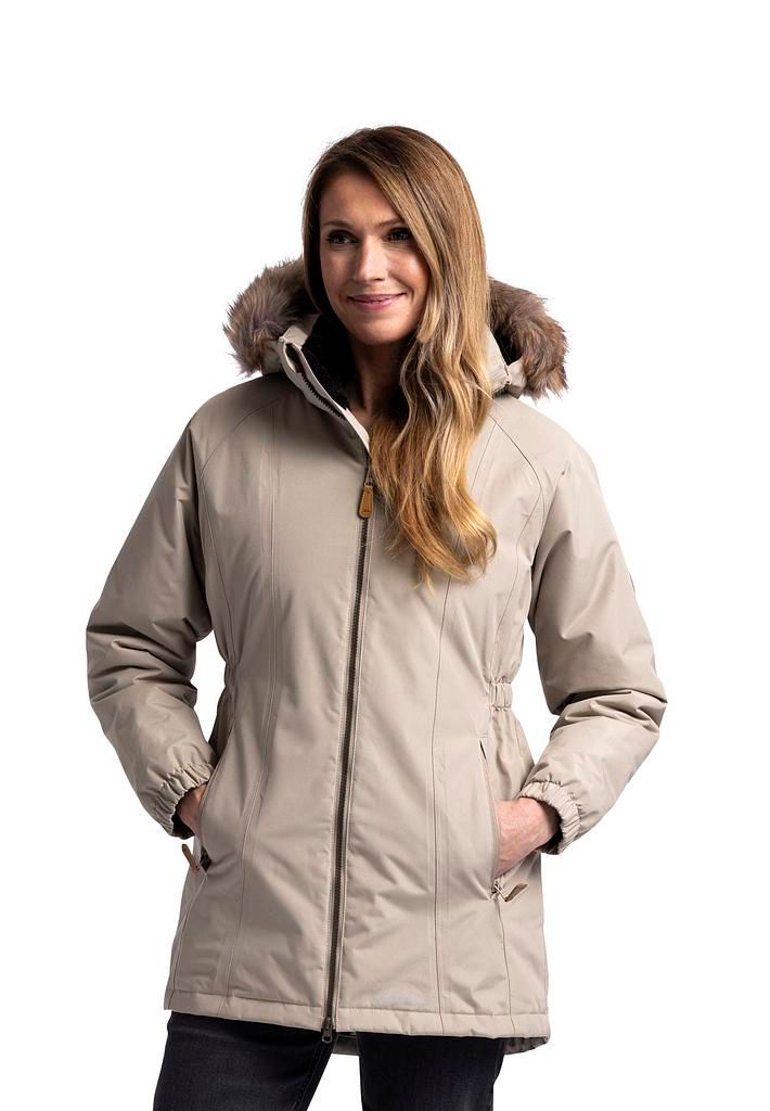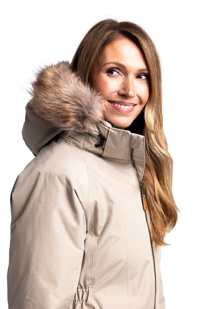 Per un calore confortevole, la giacca è leggermente imbottita, mentre il cappuccio staccabile con bordo in pelliccia sintetica consente di adattarla facilmente alle condizioni meteorologiche. L’orlo con coulisse e i polsini regolabili garantiscono una vestibilità ottimale, mentre le due tasche con cerniera proteggono i tuoi oggetti di valore.