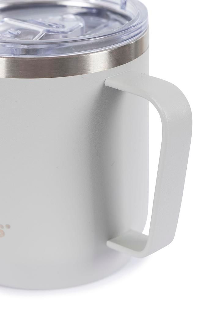 Scopri la compagna perfetta per le tue avventure: la tazza Nooper! Con un comodo manico e un elegante logo inciso al laser, questa tazza è la compagna perfetta per le gite in campeggio e per il tragitto casa-lavoro. Realizzata in acciaio inossidabile di alta qualità, è resistente e robusta. Il coperchio rimovibile in plastica trasparente con guarnizione in gomma mantiene le bevande al sicuro e previene le perdite. L’apertura a scorrimento permette di sorseggiare facilmente anche in movimento. Gusta le tue bevande calde o fredde con stile e comodità con la tazza Nooper!