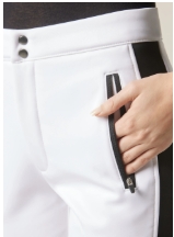 Schneehose für Damen mit elastischem Bund und praktischem Verschluss auf der Vorderseite mit Reißverschluss und Druckknöpfen. Die Fronttaschen mit Reißverschluss sorgen für eine funktionale und sichere Nutzung. Die angeraute Innenseite verwöhnt mit angenehmer Wärme, während das atmungsaktive und winddichte Material bei jeder Witterung Komfort gewährleistet. Das wasserfeste und elastische Vier-Wege-Stretchmaterial sorgt für ein Maximum an Bewegungsfreiheit sowie Schutz und macht die Schneehose ideal für den Wintersport.