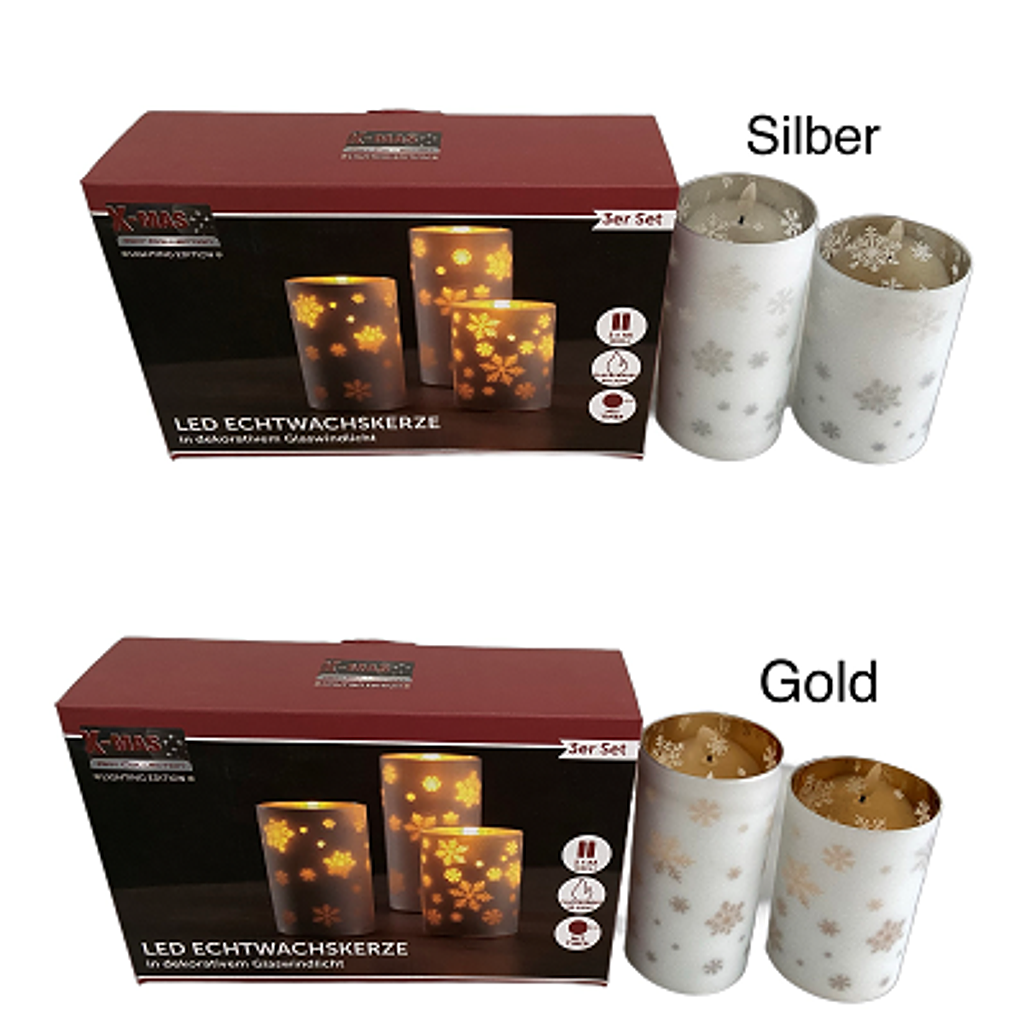LED Kerze Echtwachs im Glas – 3er Set mit Flacker-Effekt