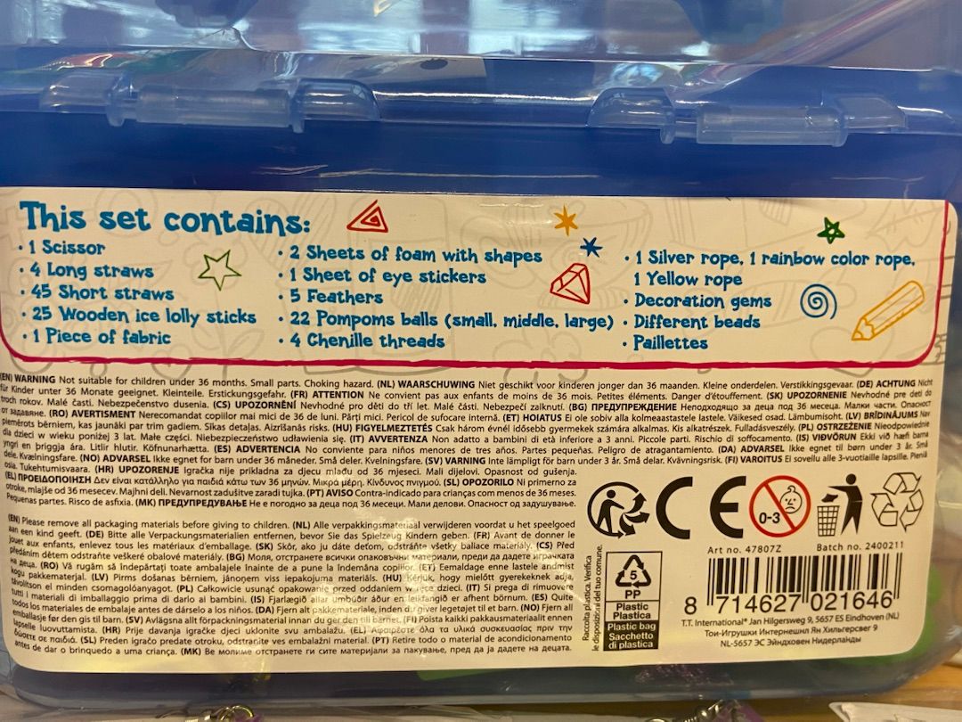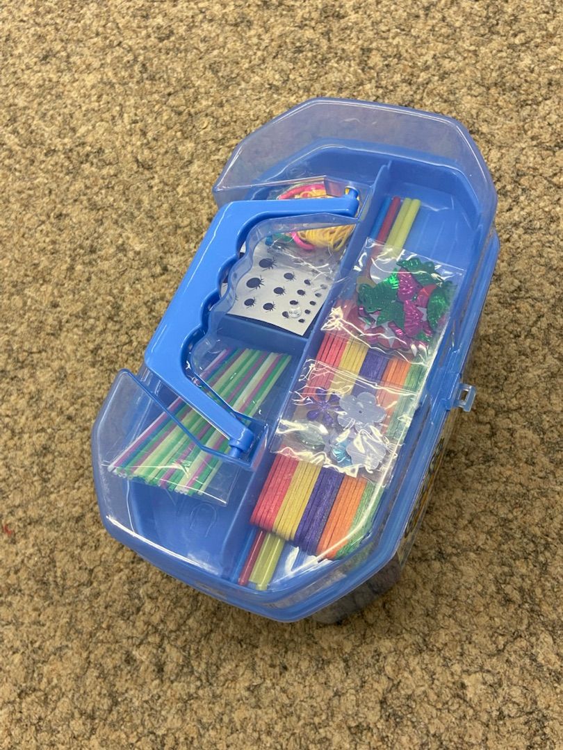 Bei diesem Artikel handelt es sich um Restware: eine Craft Case Kiste mit 200 Bastelteilen. Bitte beachten Sie, dass der Verschluss der Kiste beschädigt ist. Das Set enthält verschiedene Bastelmaterialien, darunter: