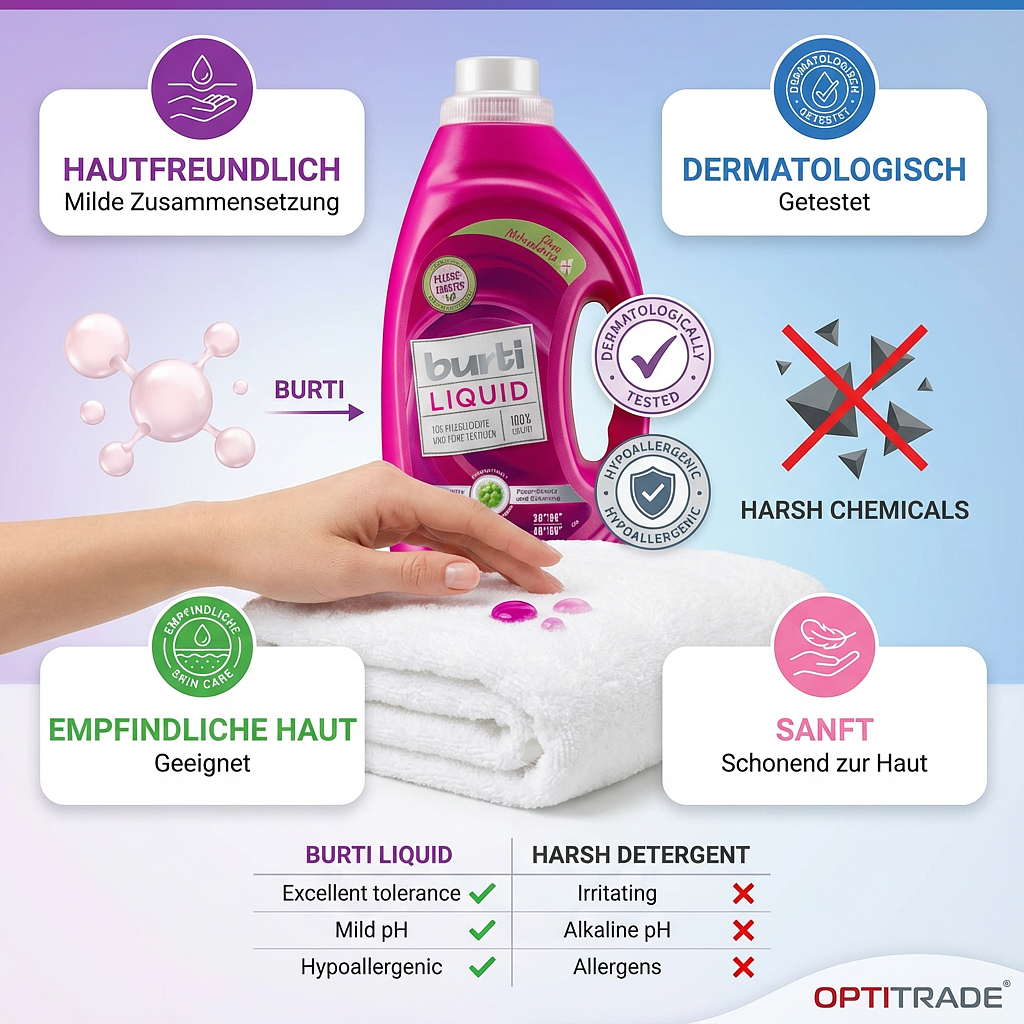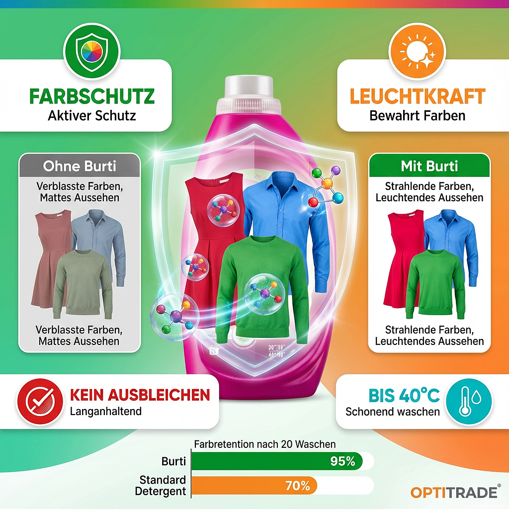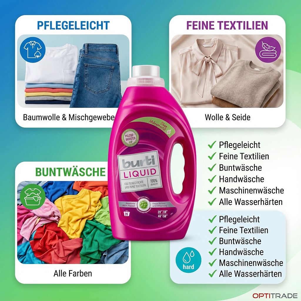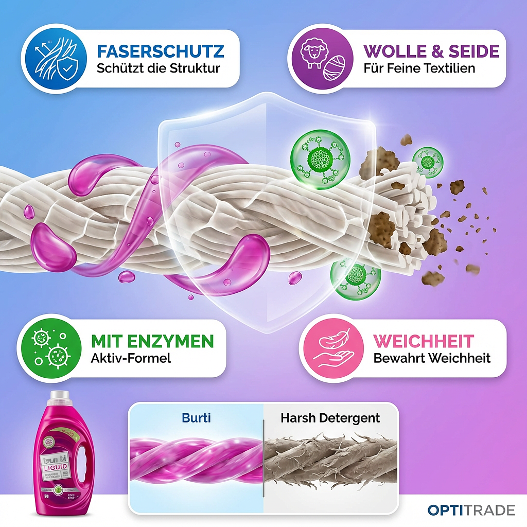 Sichern Sie sich jetzt das Burti Liquid Universal Waschgel, um eine sanfte, aber gründliche Pflege für Ihre gesamte Wäsche zu gewährleisten und die Lebensdauer Ihrer Lieblingstextilien zu verlängern.