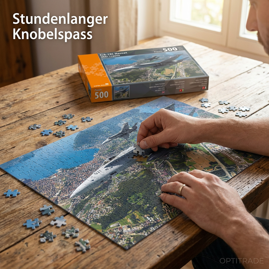 Erleben Sie die beeindruckende Szene, in der eine F/A-18C Hornet majestätisch über der malerischen Kulisse von Lugano kreist. Dieses Flugzeug Puzzle Erwachsene bietet nicht nur stundenlangen Knobelspass, sondern resultiert in einem eindrucksvollen Bild, das sich perfekt als Dekoration eignet. Die präzise Stanzung und die hohe Druckqualität garantieren ein optimales Puzzleerlebnis.