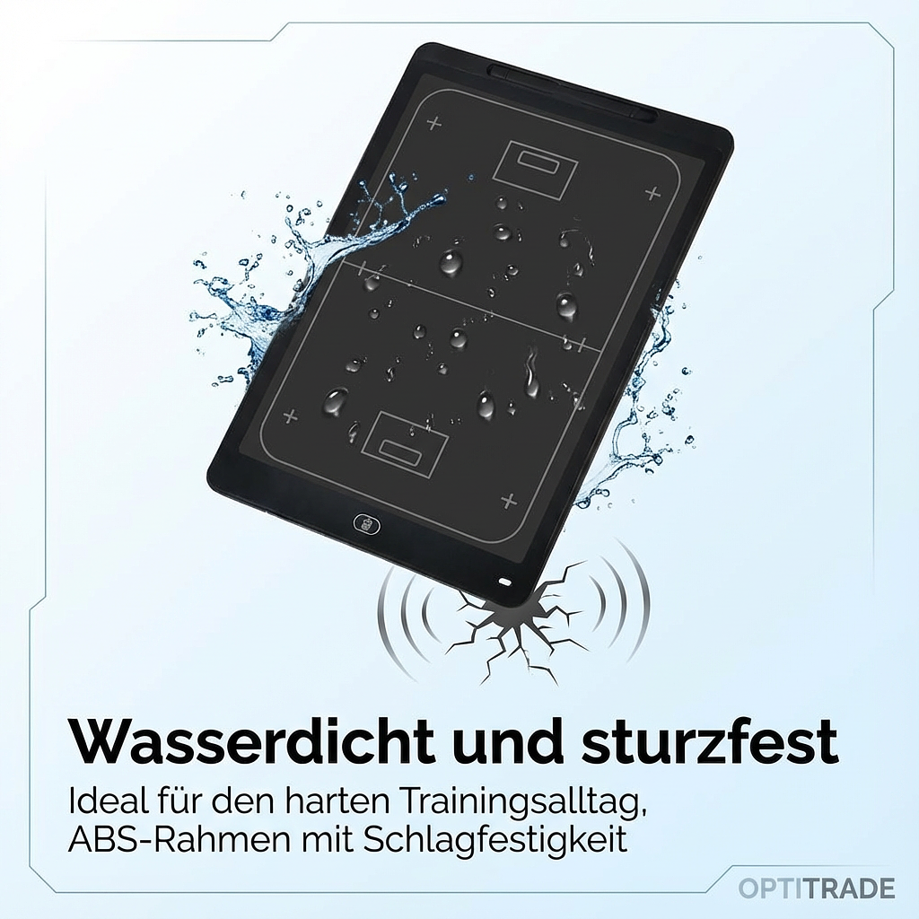 Diese Unihockey Taktiktafel wasserdicht und sturzfest ist ideal für den harten Trainingsalltag. Der hochwertige ABS-Rahmen bietet gute Schlagfestigkeit und einen bequemen Griff. Die integrierte Bildschirmsperre schützt Ihre wichtigen Strategien vor versehentlichem Löschen, was sie zu einer zuverlässigen der Floorball Trainingshilfen macht.