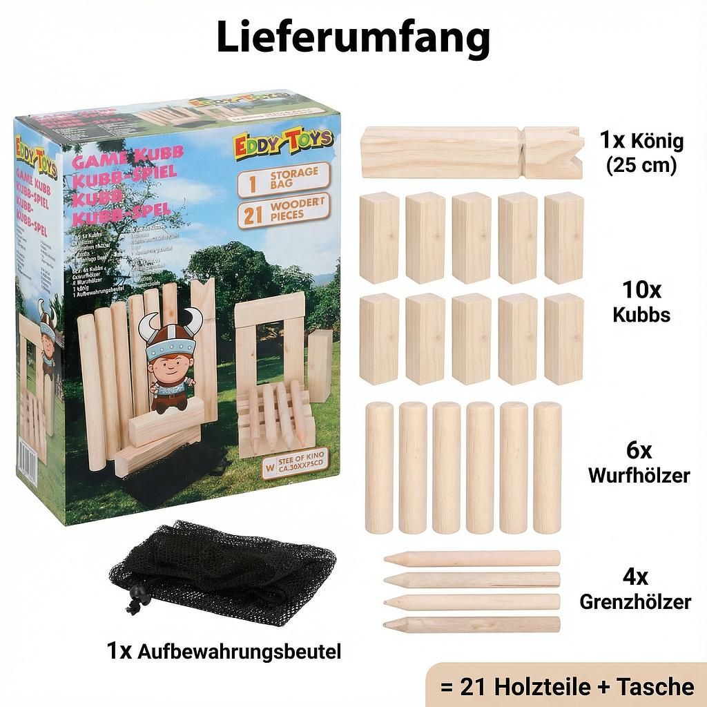 Tauchen Sie ein in die faszinierende Welt des Kubb, bekannt als Wikingerschach oder Königspiel. Dieses traditionelle Geschicklichkeitsspiel vereint Strategie und Teamgeist und bietet stundenlangen Spass für die ganze Familie. Holen Sie sich das beliebte Outdoor Spiel und erleben Sie spannende Duelle im Freien.