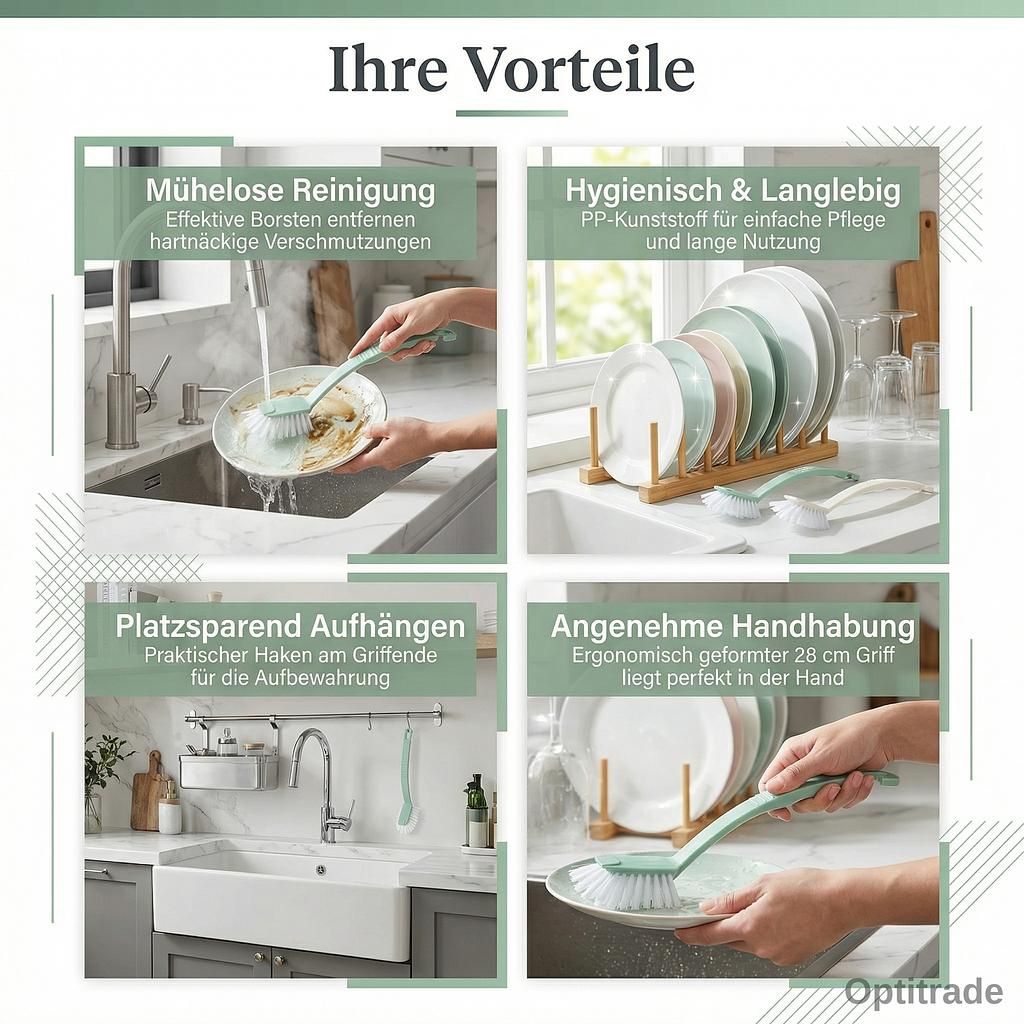 Ob für den eigenen Haushalt oder als nützliches Geschenk, dieses Spülbürsten Set bringt Farbe und Funktion in jede Küche. Holen Sie sich jetzt Ihr Set und erleben Sie den Unterschied einer Spülbürste lang, die perfekt in der Hand liegt.