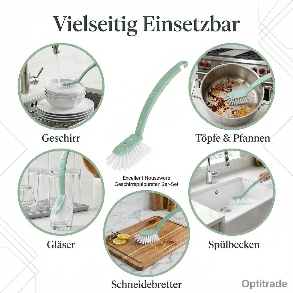 Entdecken Sie das praktische Excellent Houseware Geschirrspülbürsten 2er-Set, das modernes Design mit hervorragender Reinigungsleistung vereint. Diese Küchenbürsten sind die ideale Lösung für eine effiziente und hygienische Reinigung in Ihrer Küche und am Spülbecken.
