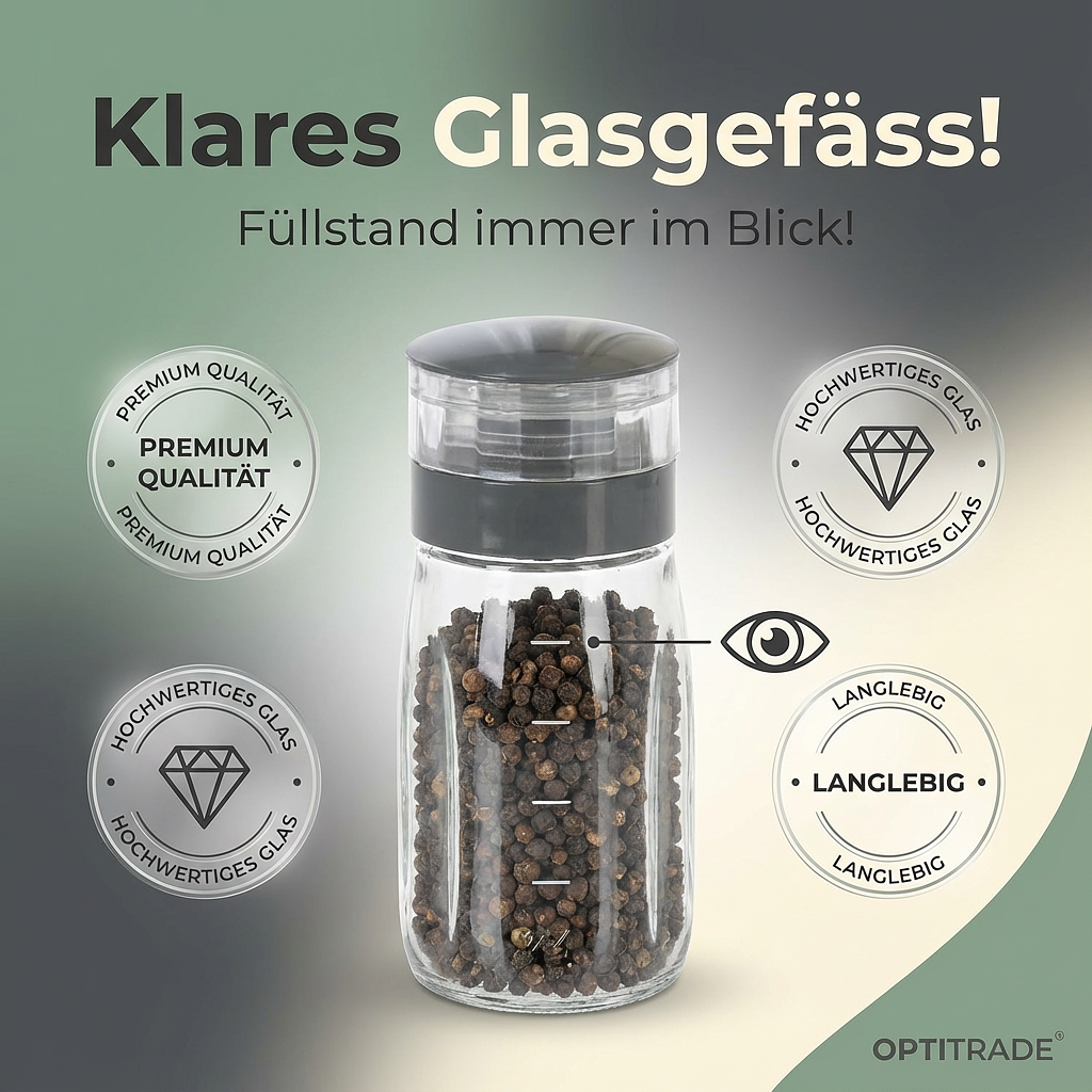 – Produktname: Glasmühle 300ml / Pfefferstreuer mit Mahlwerk