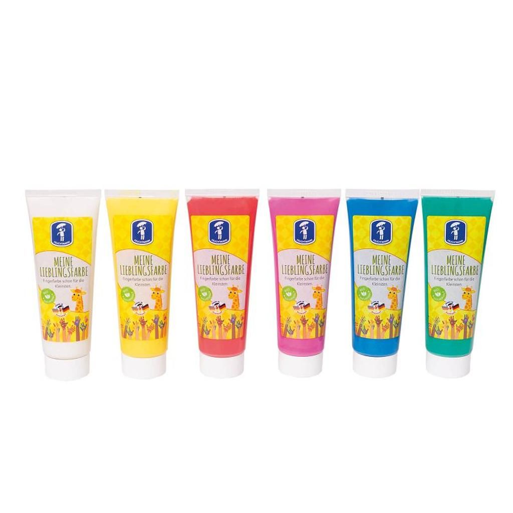 – 6 Tuben à 75 g Feuchtmann Fingerfarbe (Gelb, Rot, Grün, Blau, Pink, Weiss)