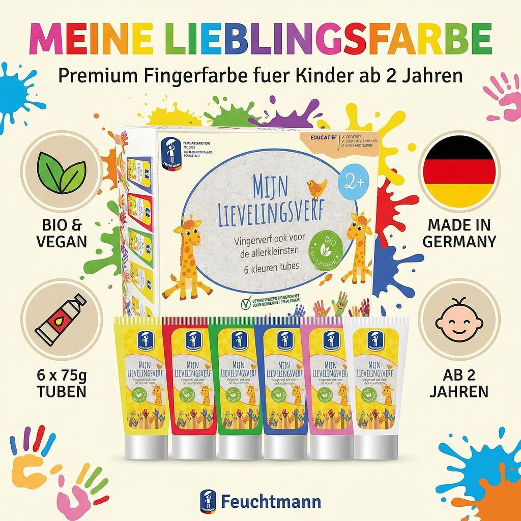 Entdecken Sie mit der Feuchtmann Fingerfarbe „Meine Lieblingsfarbe“ eine Welt voller Kreativität für Ihr Kind. Diese Premium Fingerfarbe wurde speziell entwickelt, um jungen Künstlern ab 2 Jahren ein sicheres und farbenfrohes Malerlebnis zu bieten.