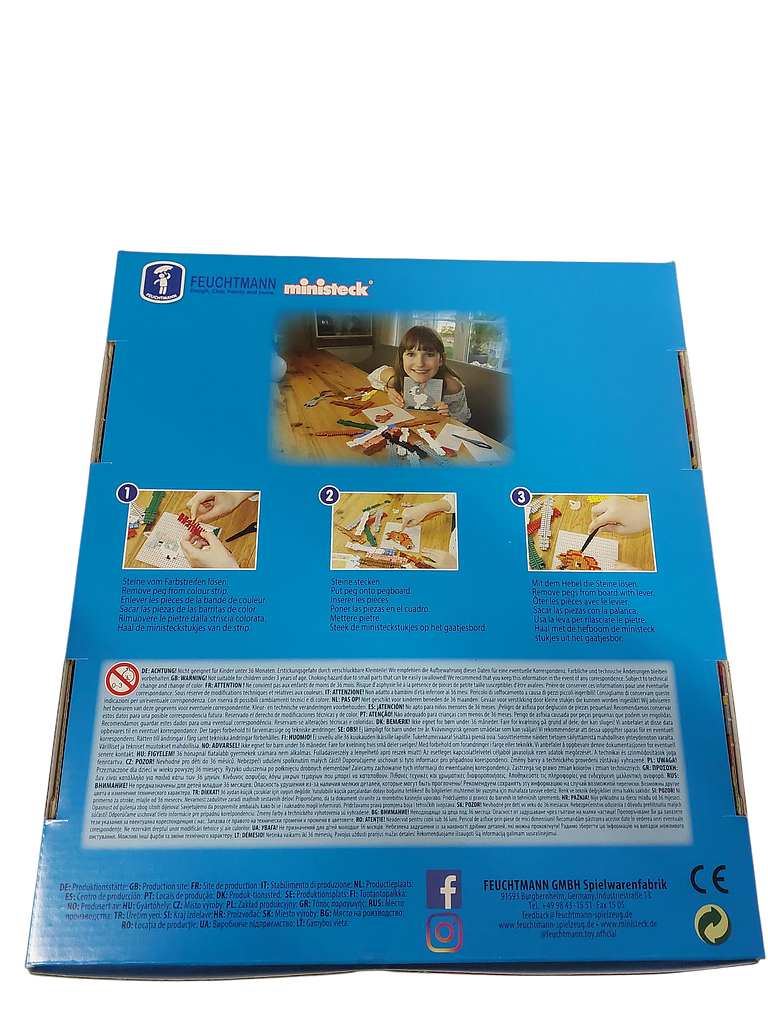 Die ministeck-Steine sind leicht zu handhaben und lassen sich bei Bedarf auch wieder von der Steckplatte lösen. So können Bilder immer wieder neu gestaltet werden. Die hohe Qualität des Materials garantiert, dass dieses Steckmosaik Set über Jahre hinweg Freude bereiten wird. Es ist die perfekte Beschäftigung für regnerische Nachmittage oder lange Autofahrten.