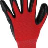 Das 6er-Set Nitril-Arbeitshandschuhe EXCELLENT bietet optimalen Schutz bei handwerklichen Tätigkeiten in Werkstatt, Garten oder auf der Baustelle. Die Handschuhe bestehen aus strapazierfähigem Polyester (13 Gauge) und verfügen über eine rutschfeste, schwarze Nitril-Beschichtung an den Handflächen – für sicheren Griff bei jeder Arbeit. In ergonomischem Design gefertigt, sorgen sie für hohen Tragekomfort und Bewegungsfreiheit. Die auffällige rot-schwarze Farbgebung ermöglicht schnelle Sichtbarkeit. Dank CE-Zertifizierung entsprechen sie europäischen Sicherheitsstandards. Ideal für Heimwerker und Profis: flexibel, langlebig und zuverlässig.
