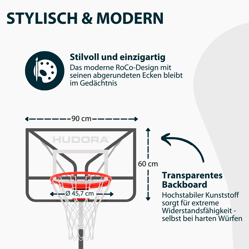 – Backboard: Transparentes Polycarbonat (90 x 60 cm)
