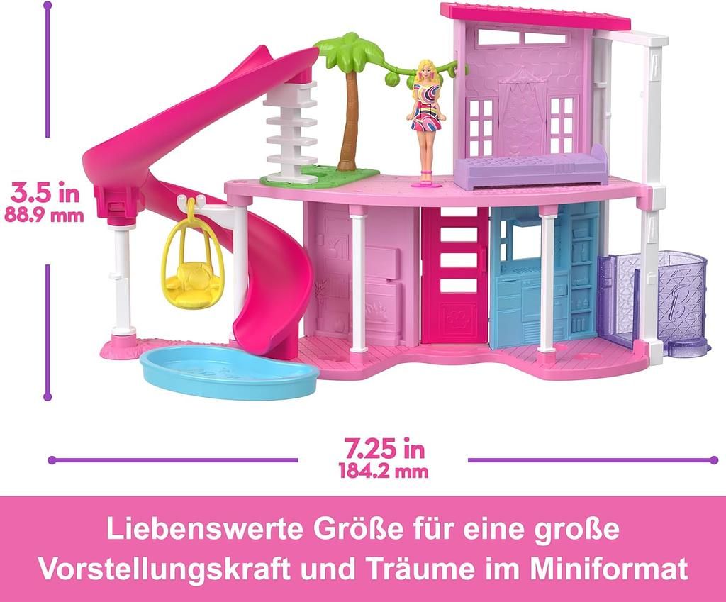 Tauchen Sie ein in die Welt der Barbie Traumvilla Miniatur. Jedes Spielset ist eine detailgetreue Nachbildung der ikonischen Barbie-Traumvilla, perfekt skaliert für die ca. 4 cm grosse Barbie Minipuppe. Entdecken Sie die vielen versteckten Funktionen und erleben Sie Abenteuer, die im Miniformat noch spannender sind.