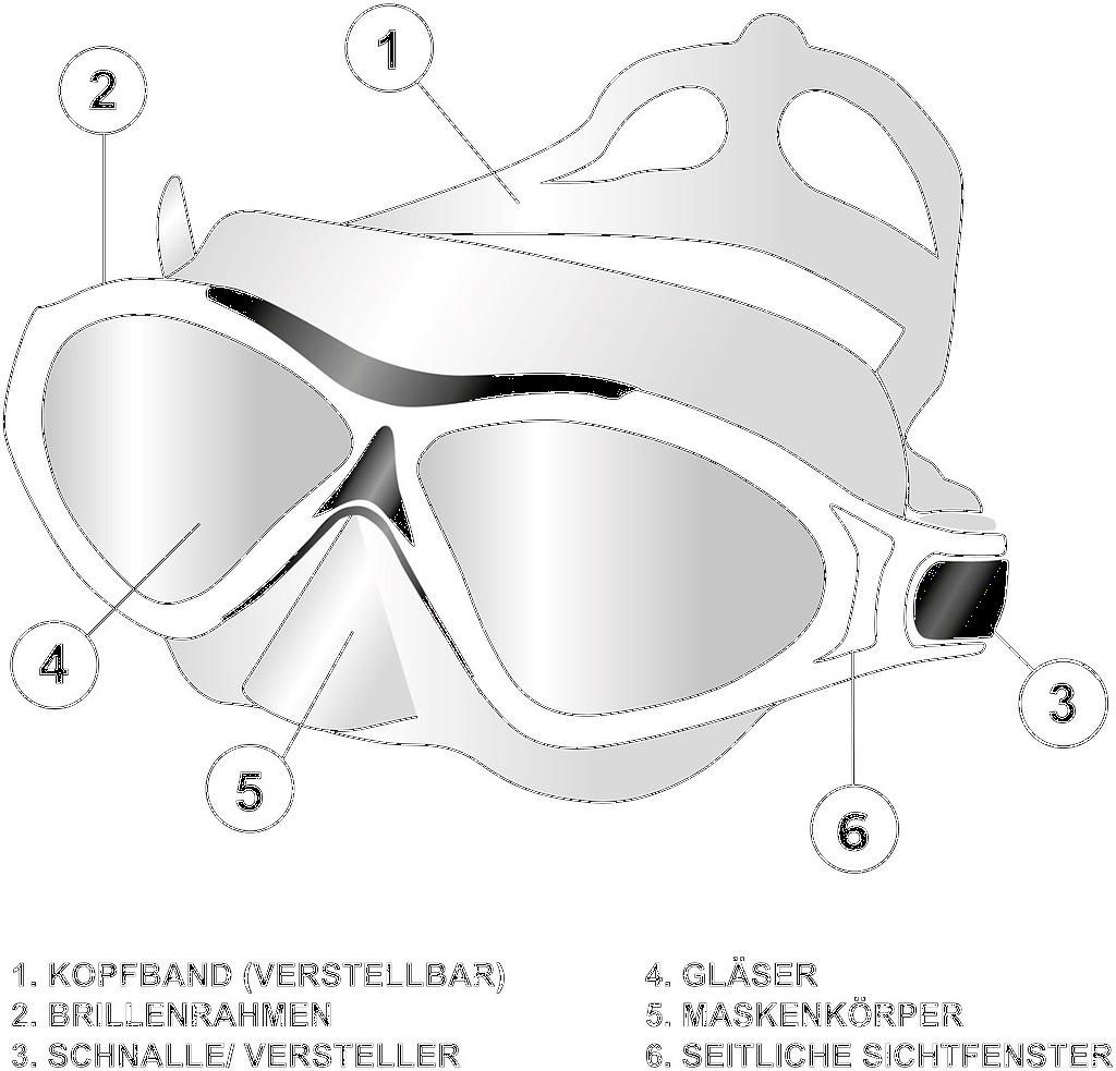 – Tauchmaske Doppelglas aus Sicherheitsglas für ein extra weites Sichtfeld
