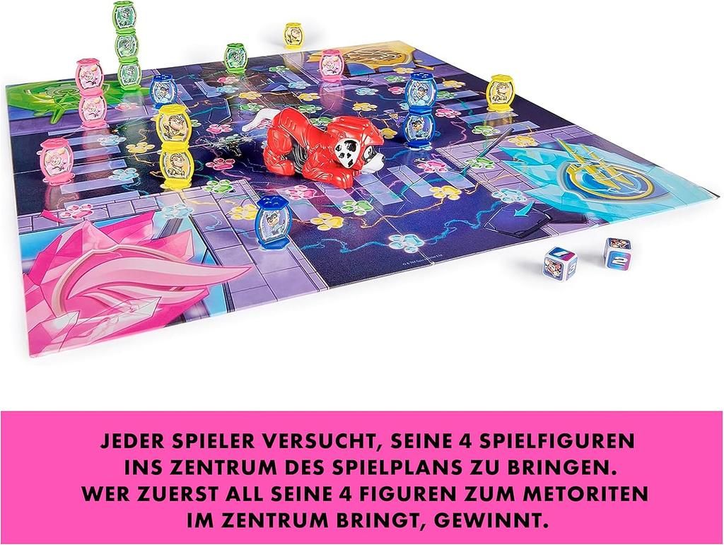 Ein geheimnisvoller Meteorit ist in Abenteuerstadt abgestürzt – und verwandelt die PAW Patrol in superstarke Mighty Pups! Begleite Skye, Chase, Rocky und Rubble auf ihre spannendste Mission – und hilf ihnen, den Meteorit im Zentrum des Spielfelds zu erreichen!